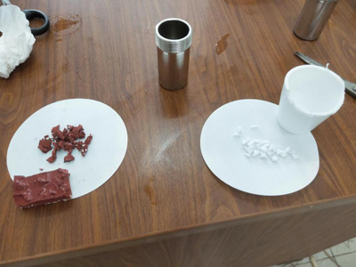 研磨實例:塑膠跑道和塑料杯的研磨,為滿足研磨在常溫下進行,使用液氮預(yù)先脆化后再研磨,將塑膠材料剪碎放入鋼罐中,把專用研磨珠加入鋼罐后把鋼管擰緊,然后把鋼罐放置液氮中泡制幾分鐘,把研磨儀相關(guān)參數(shù)調(diào)整完畢,最后把帶樣品鋼罐放入研磨儀里進行研磨。